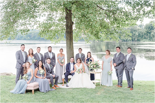 Brendan along with his groomsmen started the day playing a few lawn games before getting into their tuxedos. After photographing his details, Brendan and I walked outside to prepare for his and Stephanie's first look. It was such a beautiful moment followed by their portraits. Their golden retriever, Rooney, joined in for a few shots. So cute!