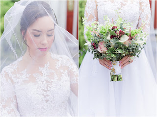 And it was filled with so many beautiful details. I absolutely loved Kathryn's long sleeve lace gown and the emerald green bridesmaids dresses that were just perfect for this fall wedding- not to mention all the gorgeous florals by Kim at Pink Dahlia Floral and Event Design.